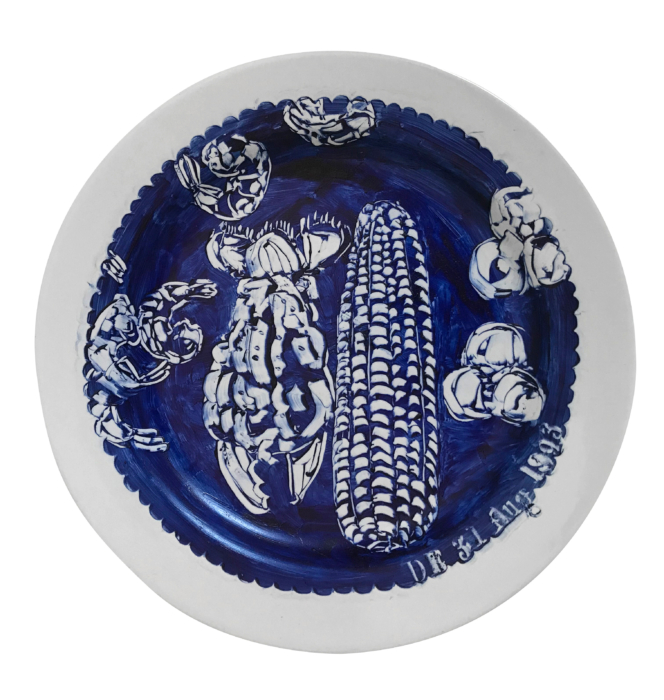 Steamed shrimp, fried shrimp, stuffed lobster tail with crab meal, corn n the cob (sic), dinner rolls with butter.