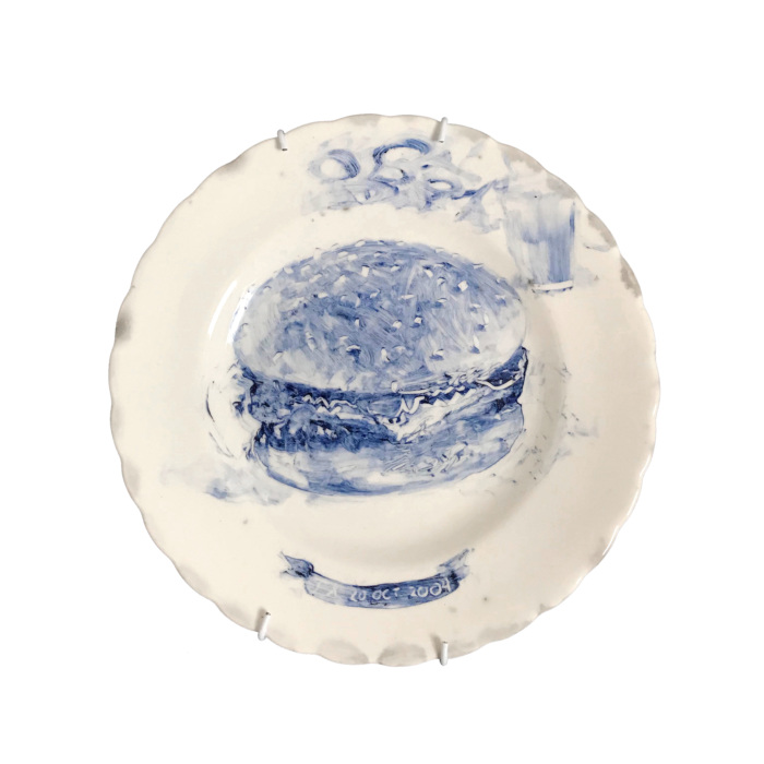 Cheeseburger, French Fries, Onion Rings, Ice Tea.