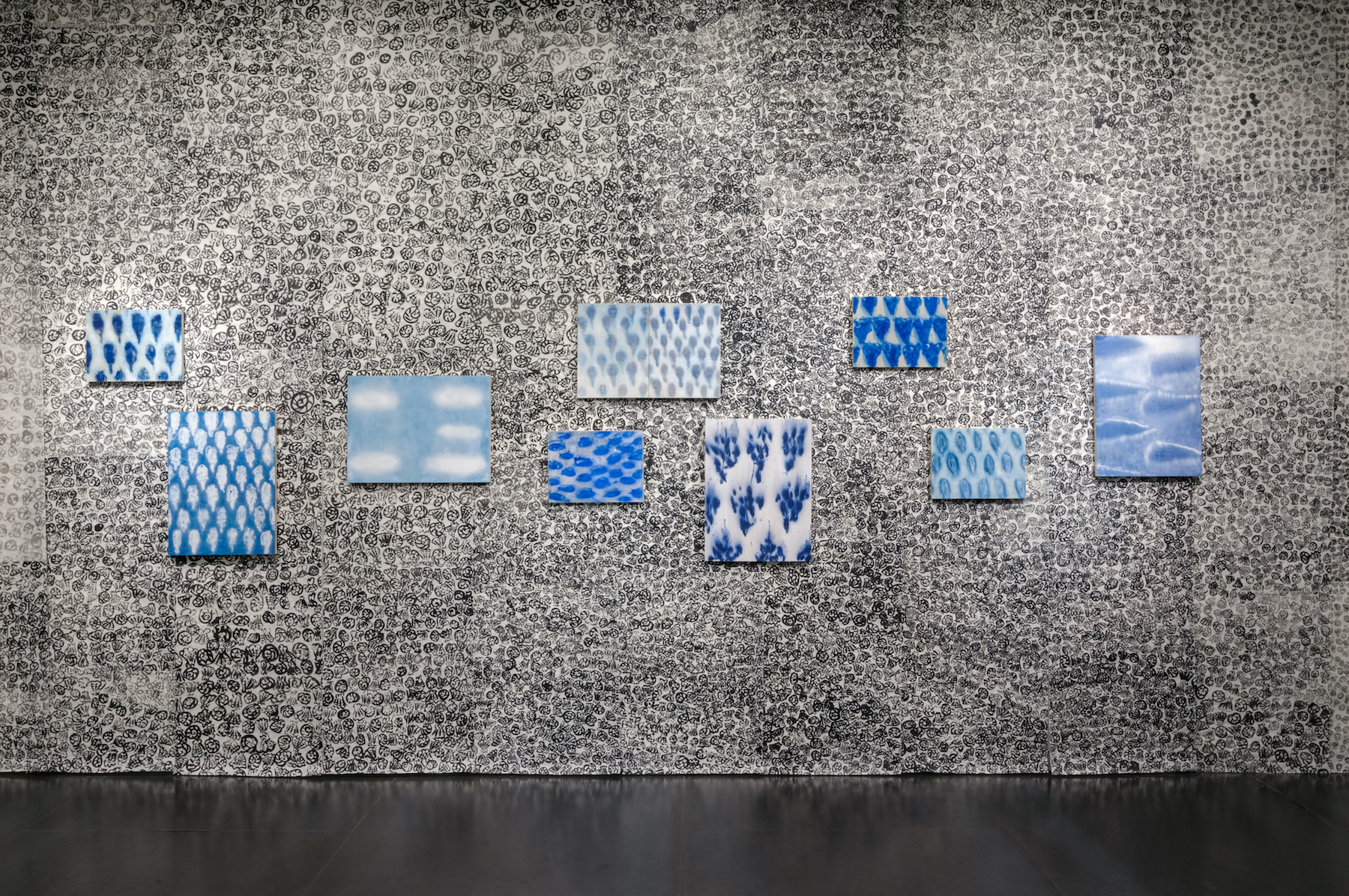 Airbrushed on cradled wood panel in front of Wallpaper (sumi painted on kozo), one of four walls